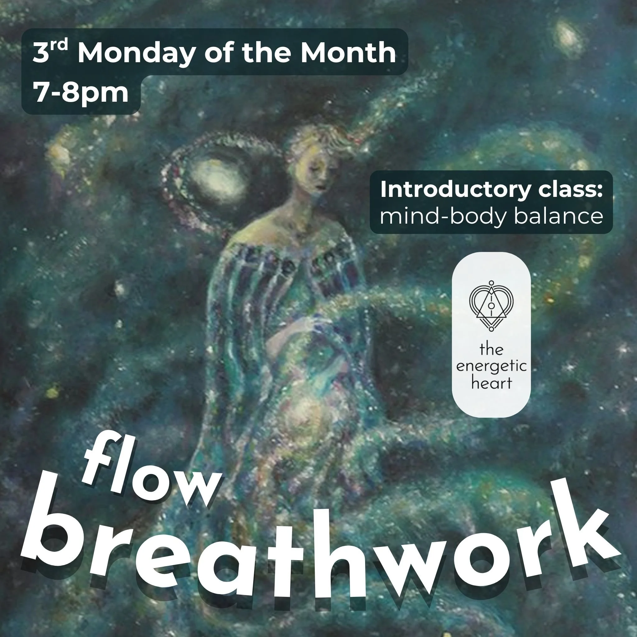 Monthly flow breathwork sessions offered every 3rd Monday at The Energetic Heart in SE Atlanta.